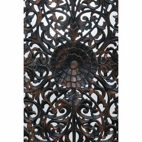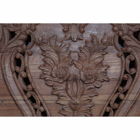 Vintage Hand Carved Wooden Natural Finish 69 Inch Wide Bed Headboard Wall Décor