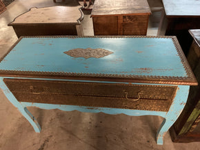 Distressed Blue Teak Wood Antique Door Repurposed 67 in. Tall Bedroom Armoire