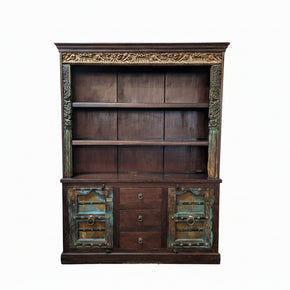 Antique Teak Wood Door Repurposed Armoire With Brass Bars