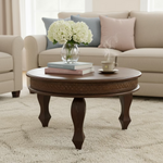The table top is supported by four short Mango wood legs exuding grace and elegance to complement any décor. This classic solid wood table is handcrafted from Mango wood which is a sturdy hardwood and will last a lifetime.