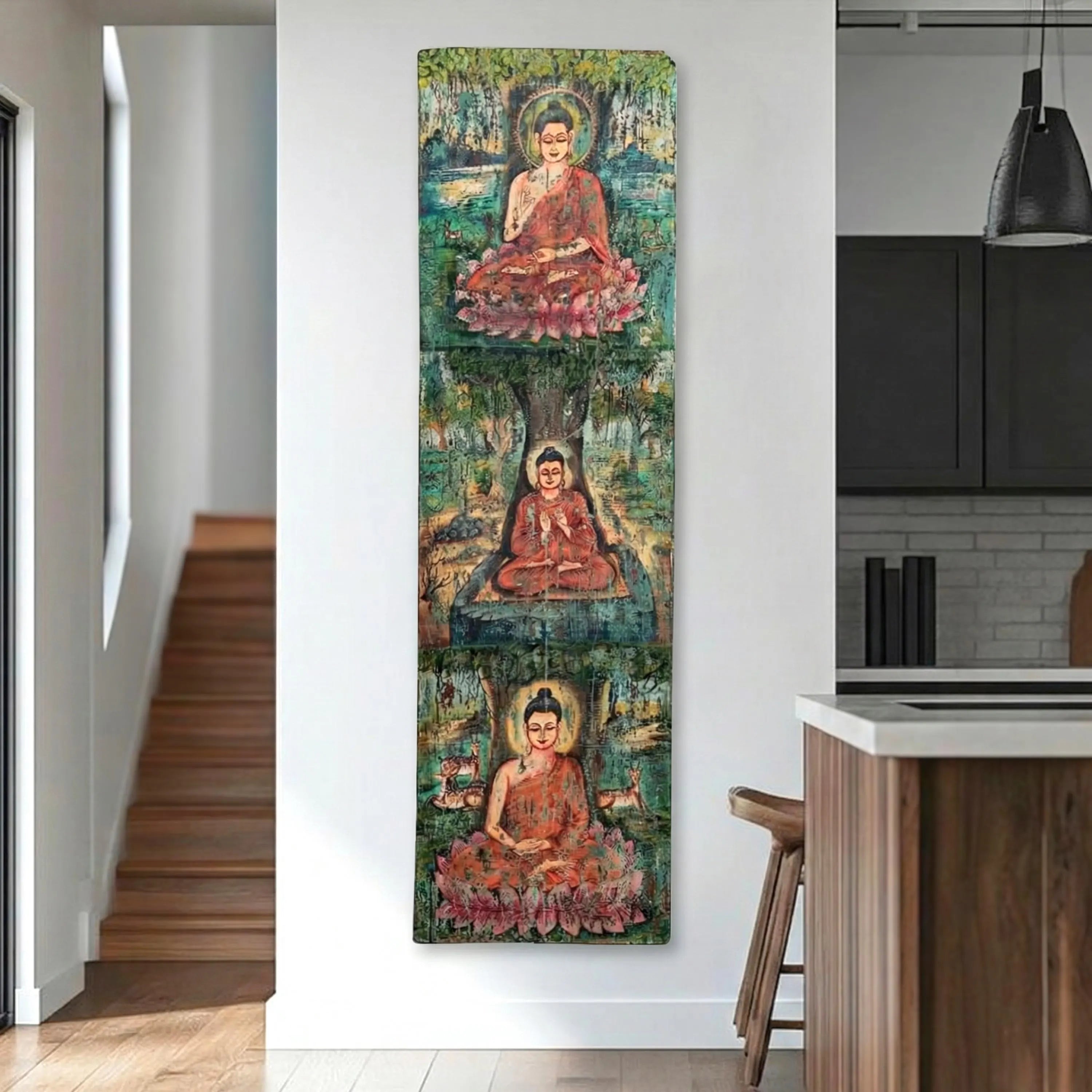 Vintage "Buddha" Hand Painted Distressed Wall Art Panel
