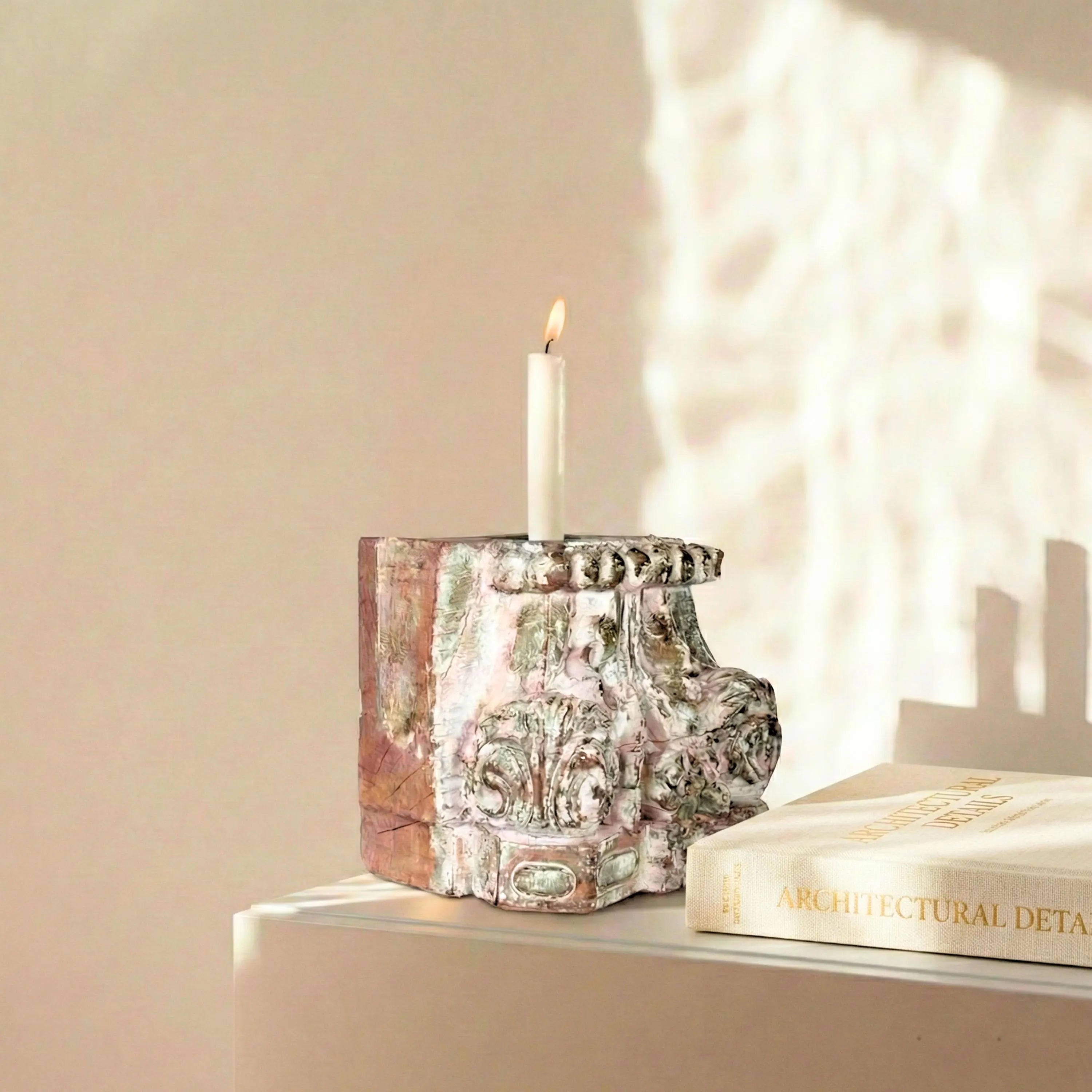 Antique Wooden Column Base Repurposed Candle Stand