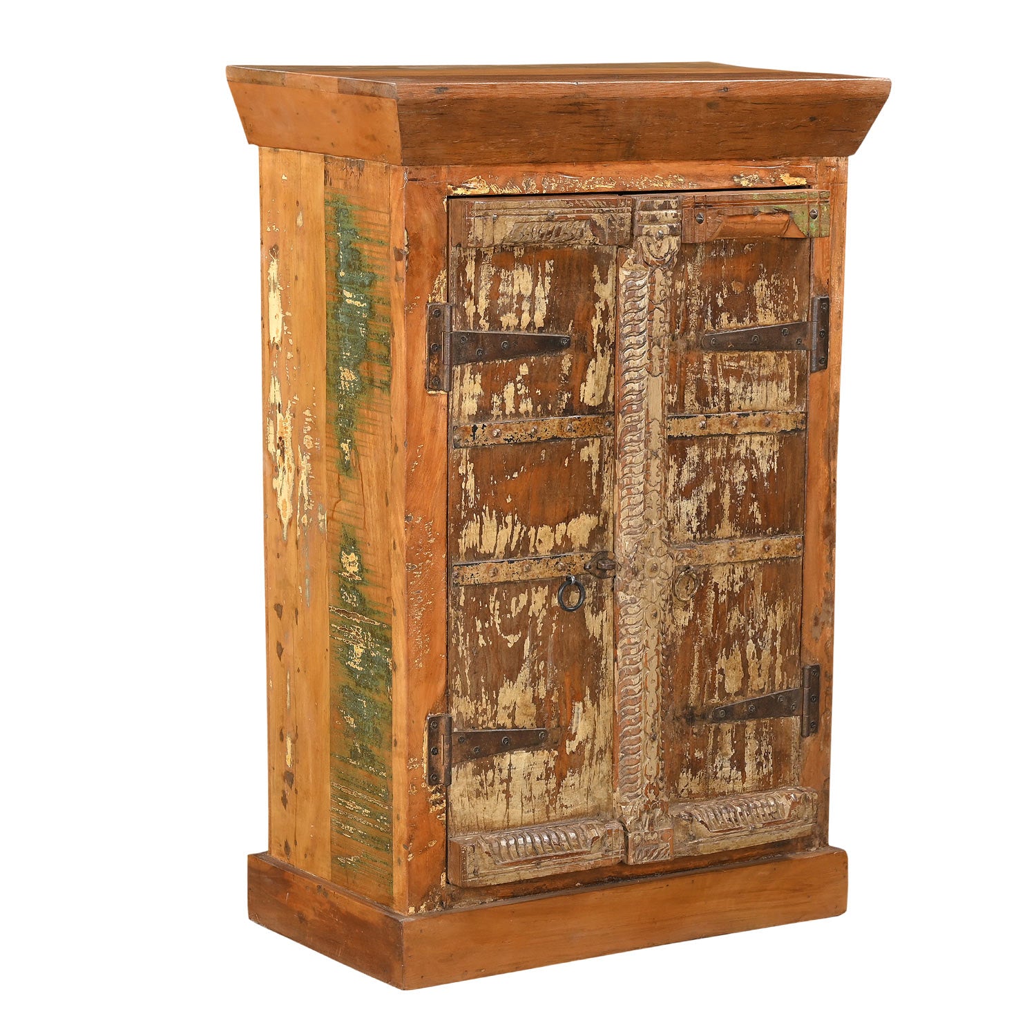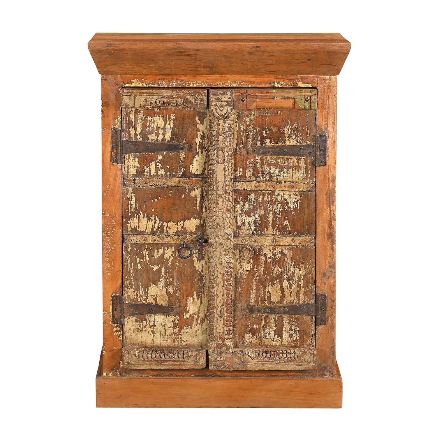This piece utilizes old architectural elements, re-claimed woods and is handcrafted by artisans using basic hand tools. Due to the nature of this creative process, you can expect to find variations in their finish and color. Imperfections like uneven planks, knots, warping, cracks, splits, holes, discoloration, dents, scratches, wood repairs, etc. are normal and considered enhancements to the nature of our collection.