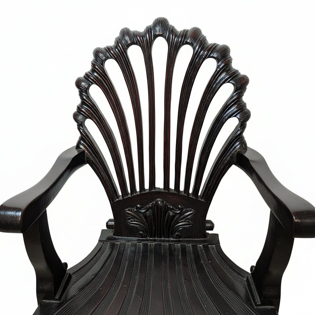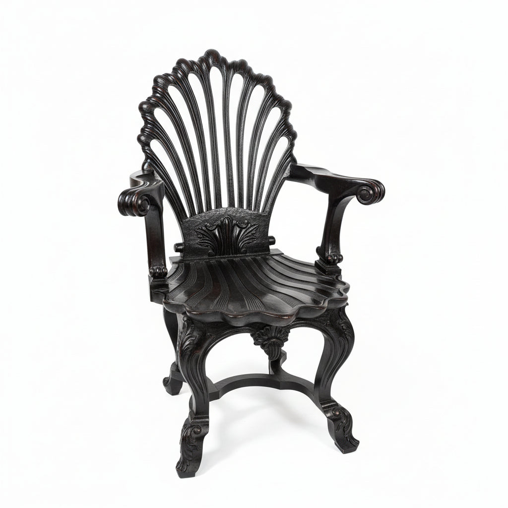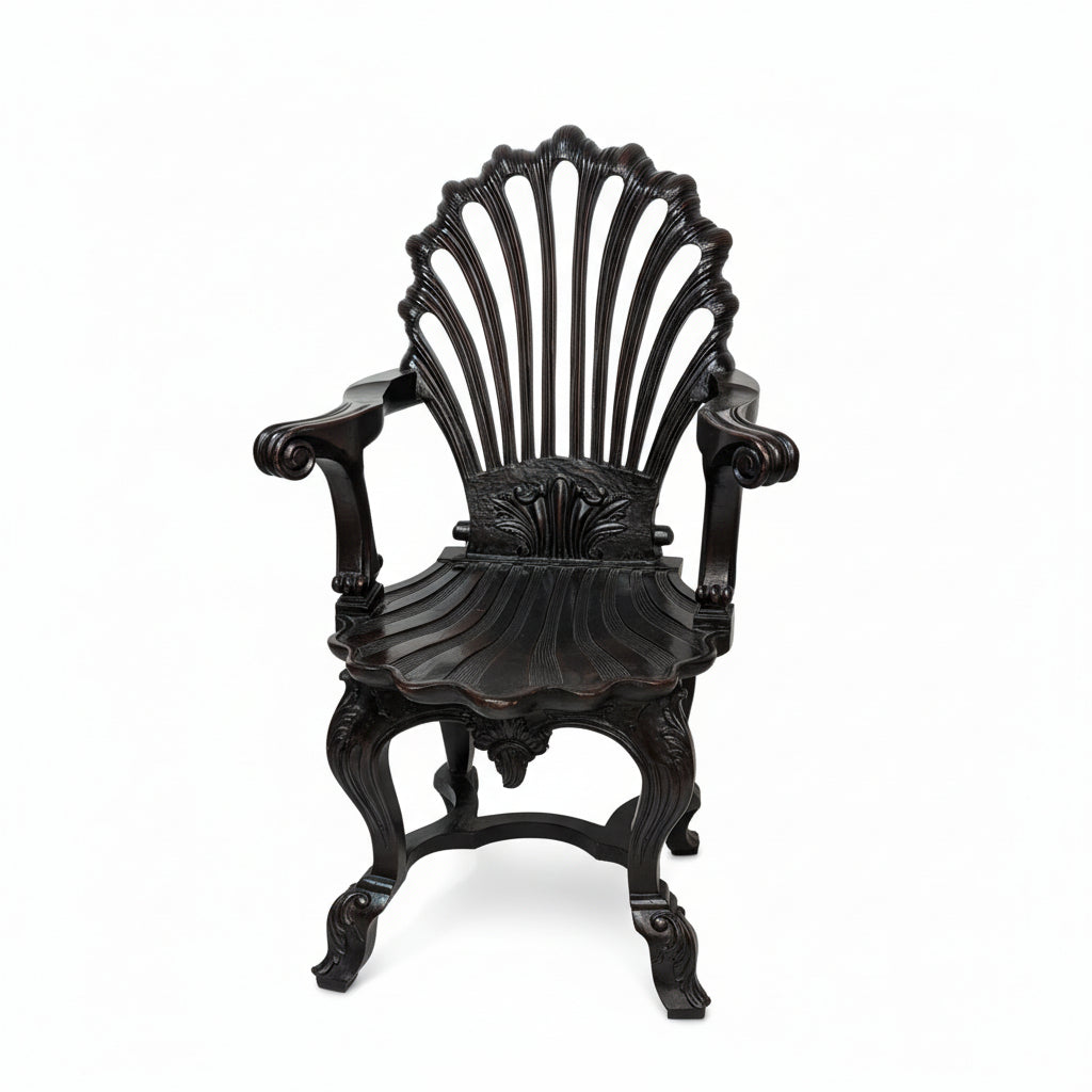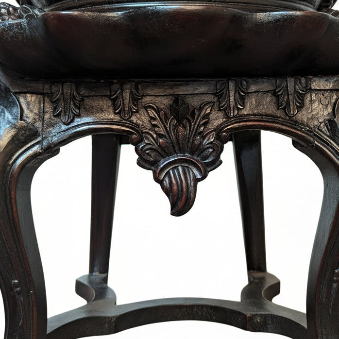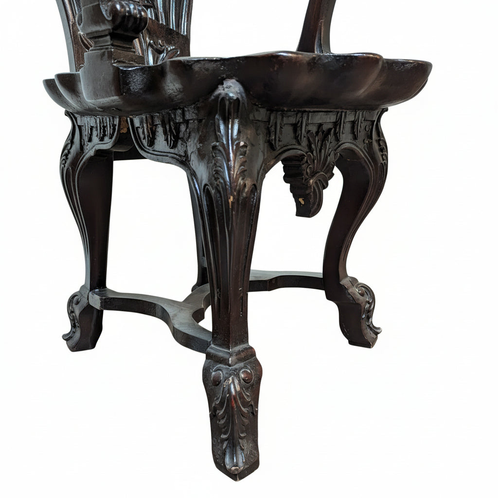 Vintage Hand Carved Solid Wood Unique Side Arm Chair