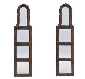 Rustic Ranch Style Aged Wood With Textured Glass 44 in. Tall Wall Hanging- Set of 2