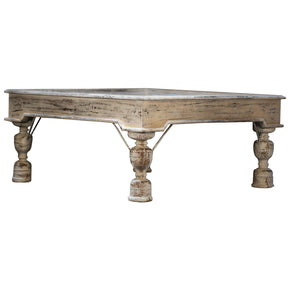 Antique Teak Wood Door Repurposed 43" Square Distressed White Coffee Table