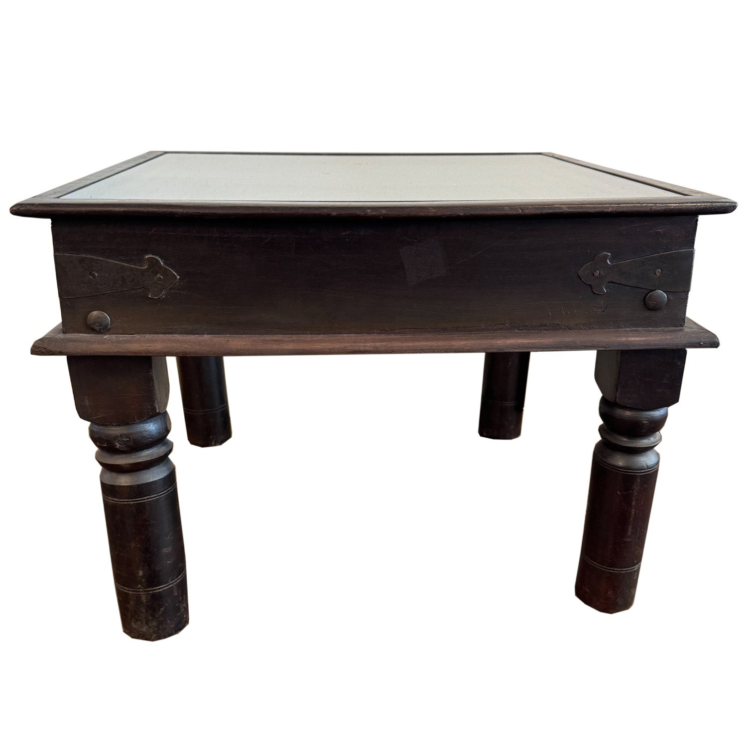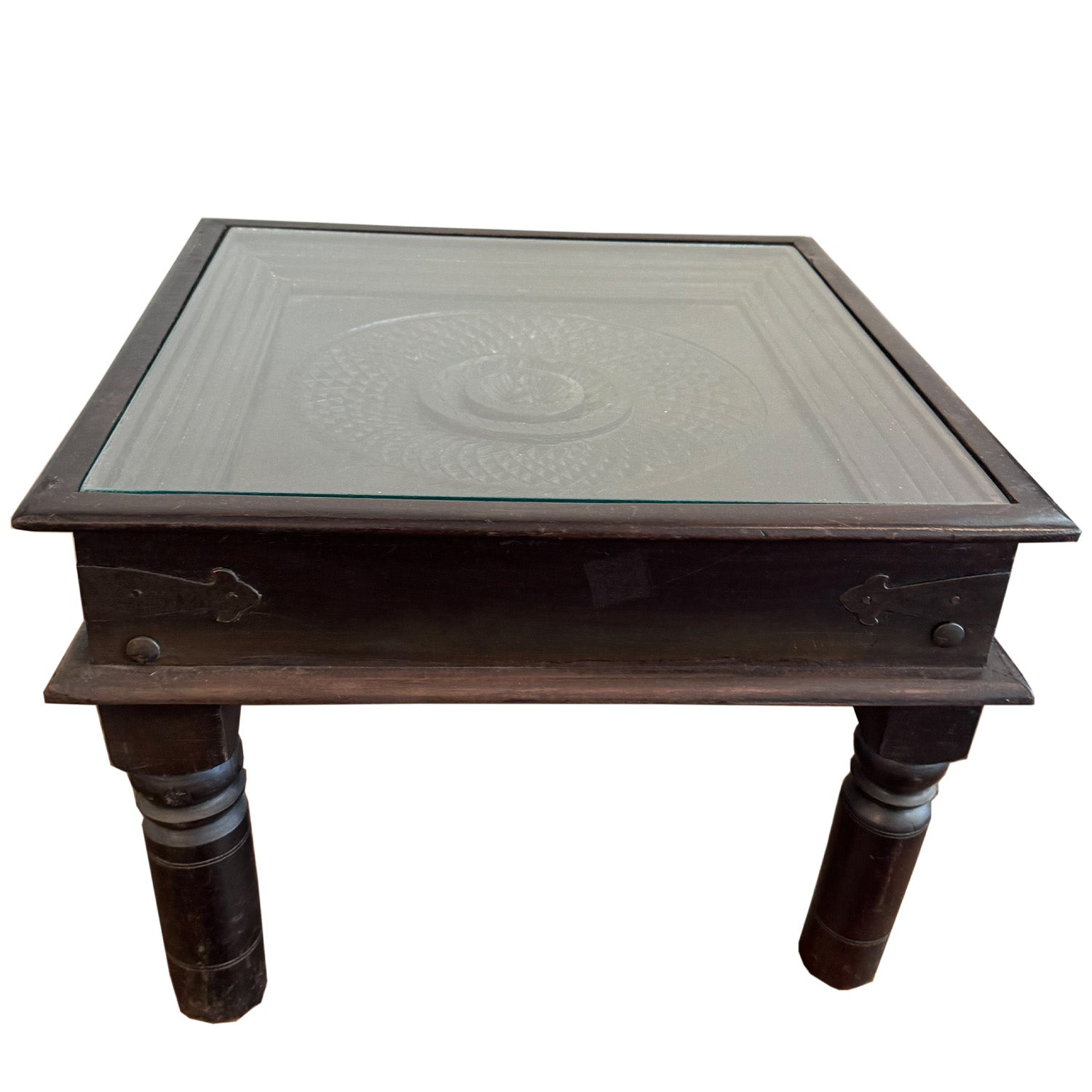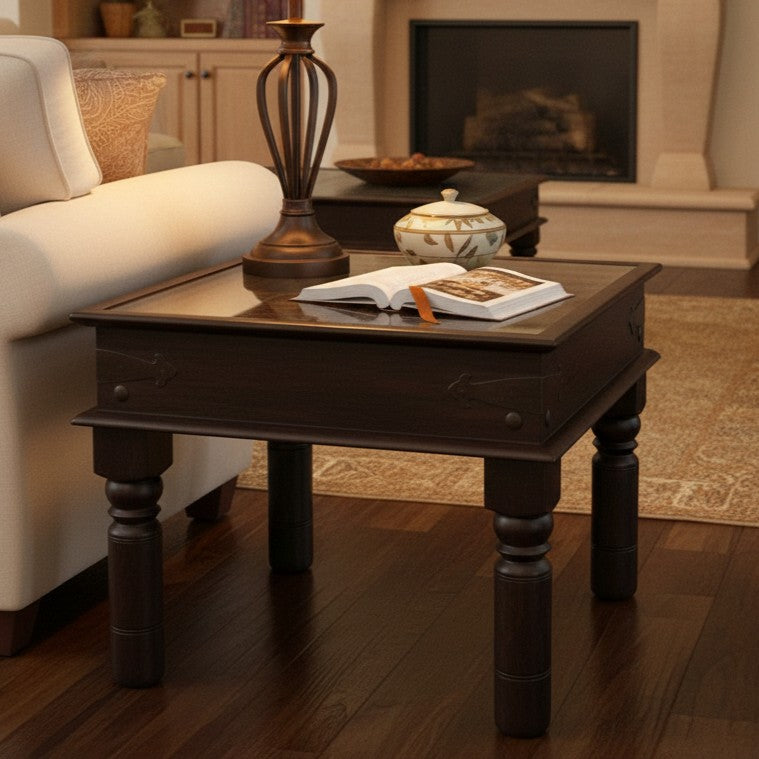 Hand Carved Floral Medallion 27 in. Square Solid Wood End Table