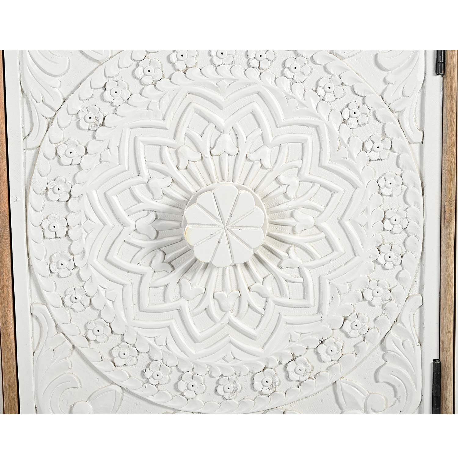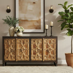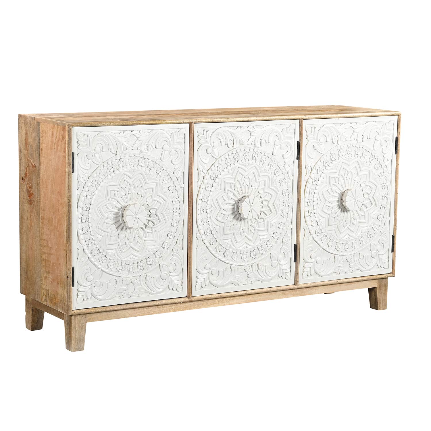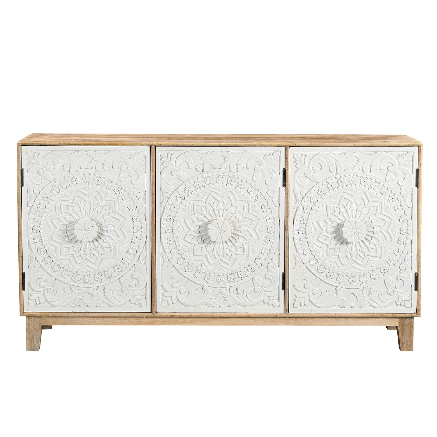 Transitional Style Hand Carved Floral Mandala Two Tone Solid Wood Sideboard