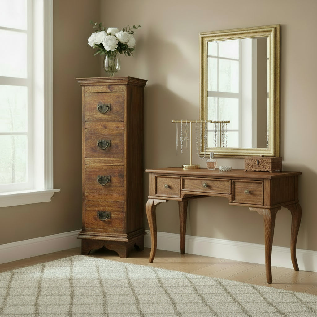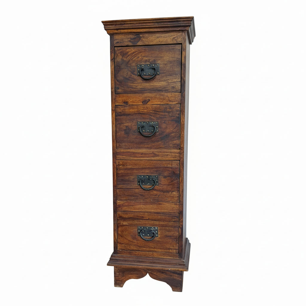 Vintage Teak Wood 51" Tall Narrow Chest Of Drawers