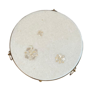 18 in. Round Metal End Table With White Marble and Mother Of Pearl Inlay