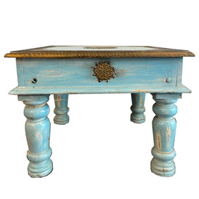 Unique 24" Square Solid Wood Distressed Blue End Table With Brass Accents