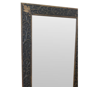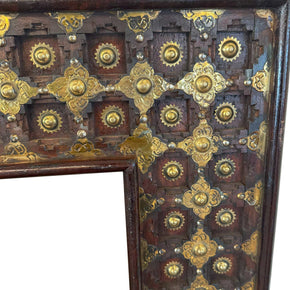 Ornate Wooden 30 in. x 47 in. Rectangle Mirror With Brass Accents