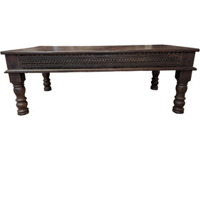 Transitional Style Solid Wood Carved Border Rectangle Coffee Table