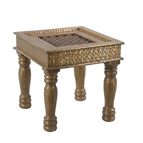 Transitional Style Unique Brass Foil Cladded 17 in. Square Solid Wood End Table