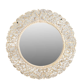 Vintage Wooden Lattice Carved 47 in. Round Distressed White Wall Mirror