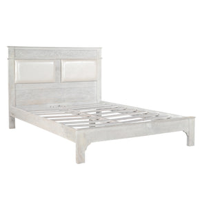 Elegant Victorian Style Hand Carved Solid Wood Queen Bed In Distressed White