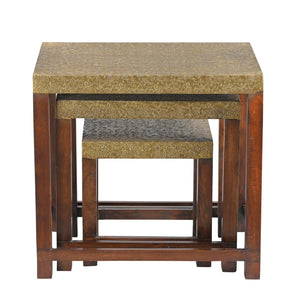Elegant Brass Foil Cladded Solid Wood Nesting Tables- Set of 3