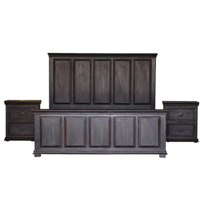 Modern Solid Wood Panel Dark Walnut Finish King Bed With Nightstands