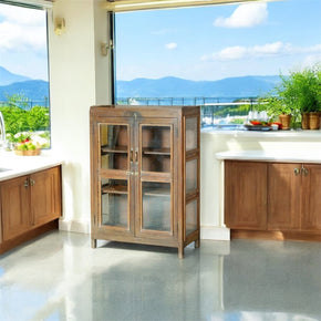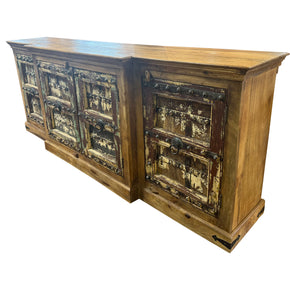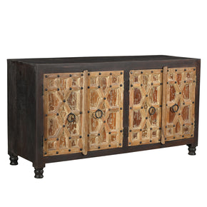 Far Pavilion takes pride in offering you the best and the most premium quality sideboards and credenzas. Our storage cabinets are available in a variety of one-of-a-kind styles and designs. They are crafted from solid wood and reclaimed wood that has been sourced from timber with a rich history. Old architectural elements like antique doors, columns, windows are upcycled and given a new life by repurposing them into furniture pieces. It is our best effort to keep the original nail heads, brass pins, metal pulls, and other hardware intact to enhance the beauty of these sideboards.