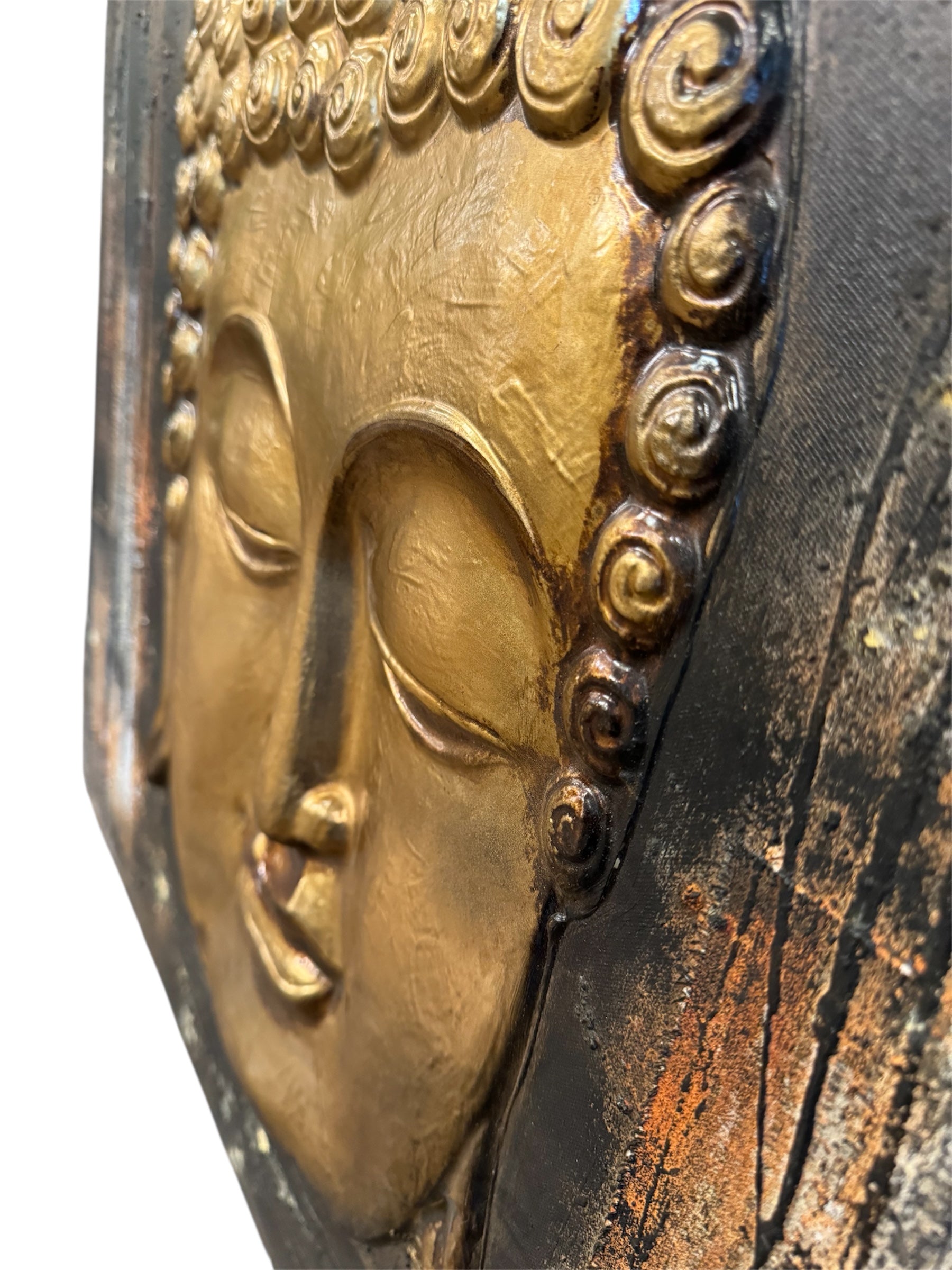 31 in. x 34 in. Large Gold Color Buddha Painting