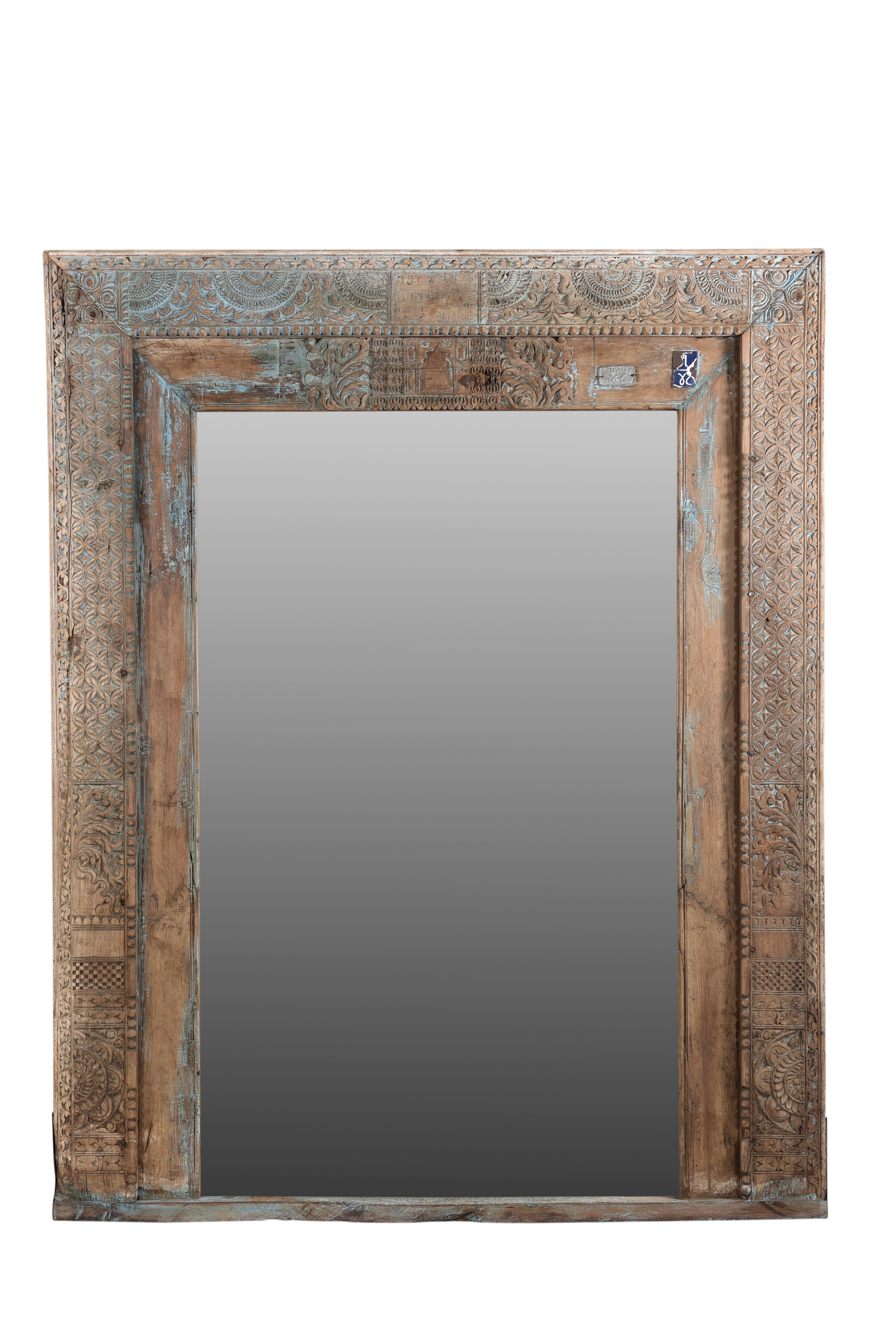 1800s Carved Teak Wood Doorframe Repurposed 82" Tall Extra Large Floor Mirror