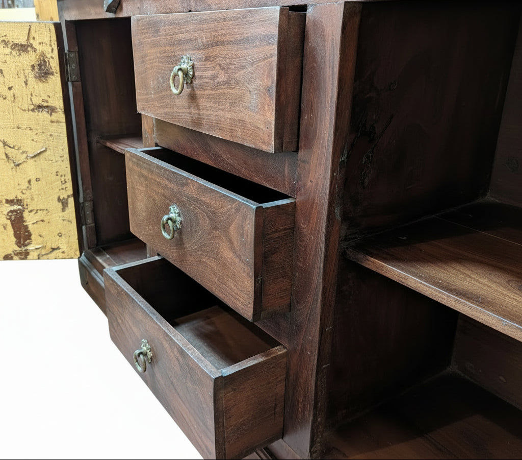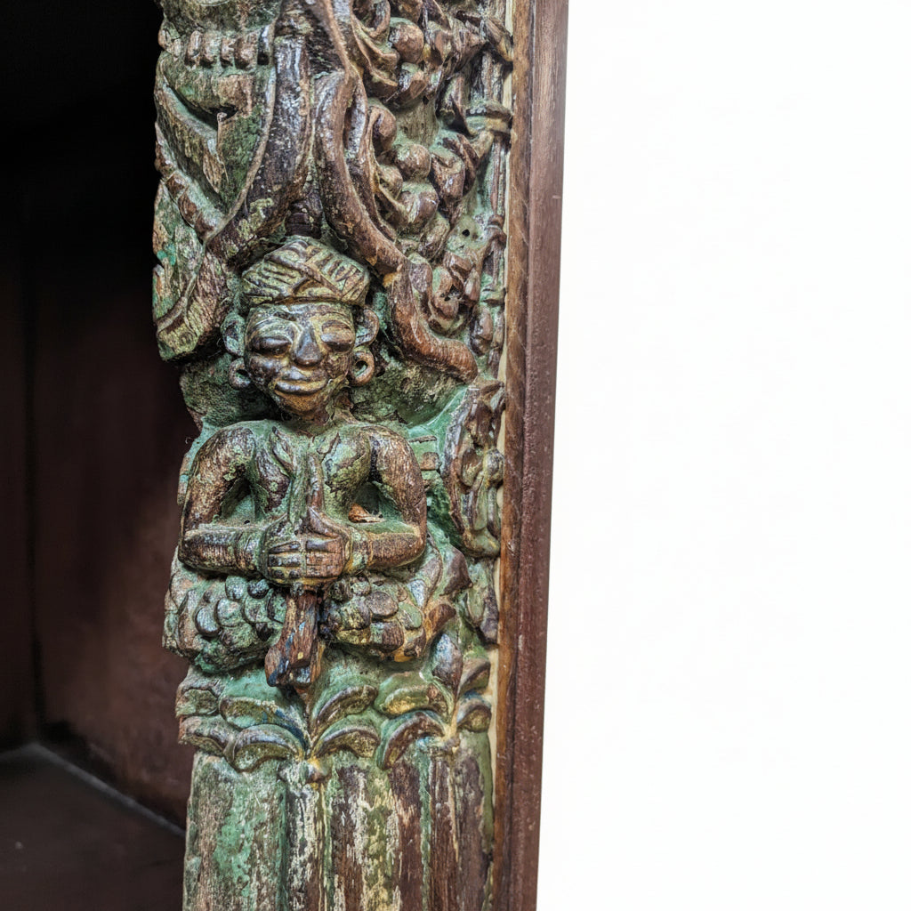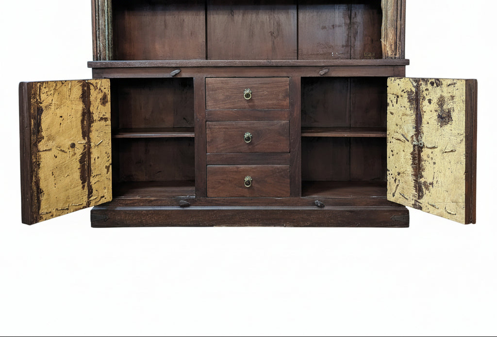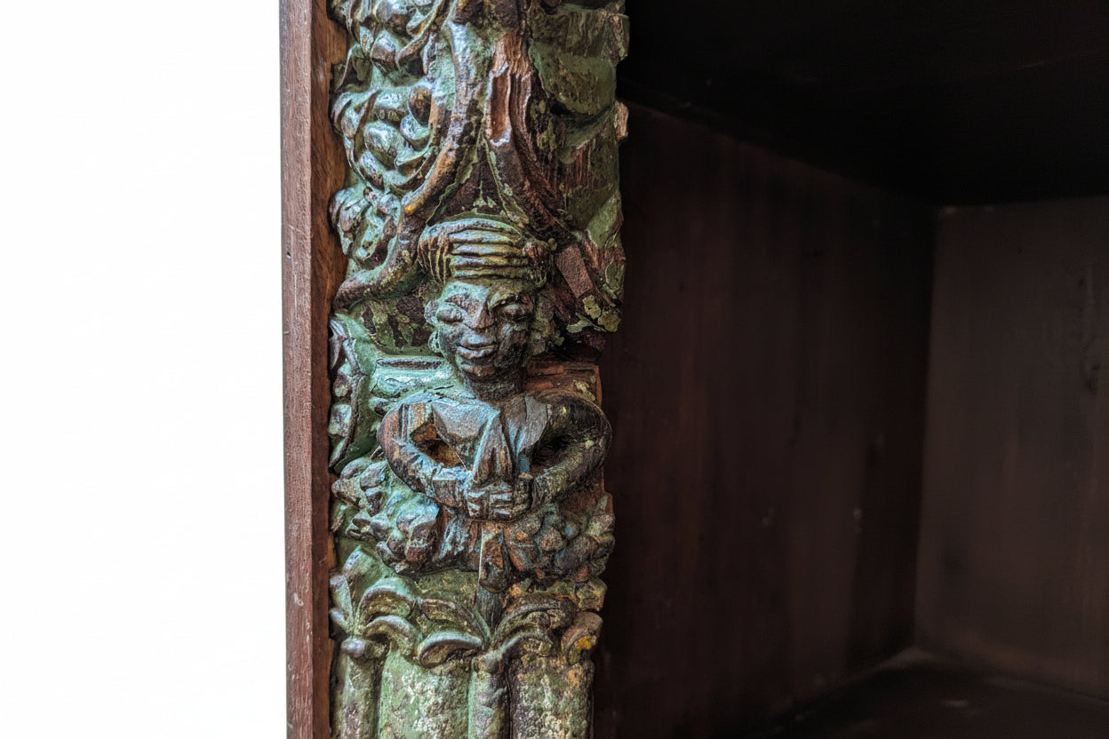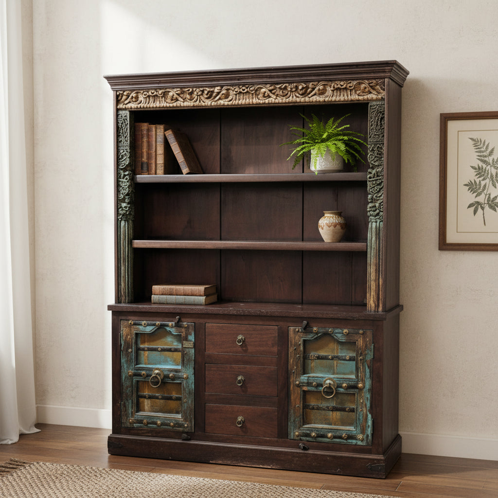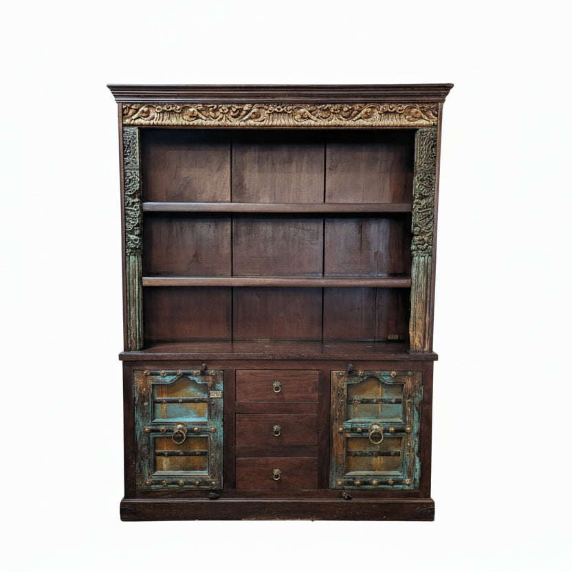 Antique Door And Carvings Repurposed Large 70" Wide Bookcase Cabinet