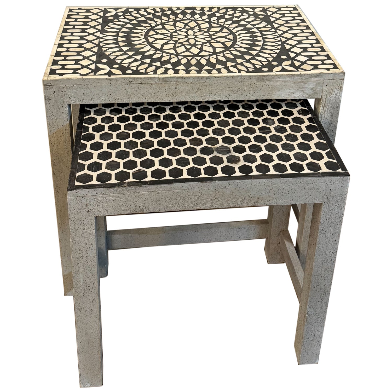 Distressed Gray Nesting Tables With Bone Inlay Top - Set of 2