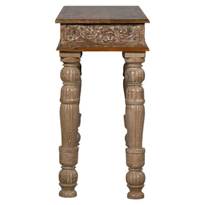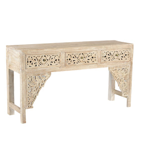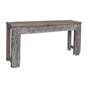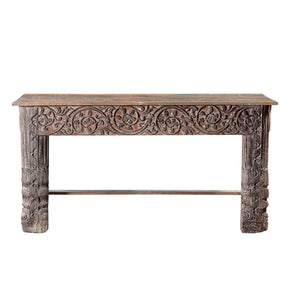 Farmhouse Style Antique Lattice Carved Teak Wood Frieze Repurposed 75" Long Console
