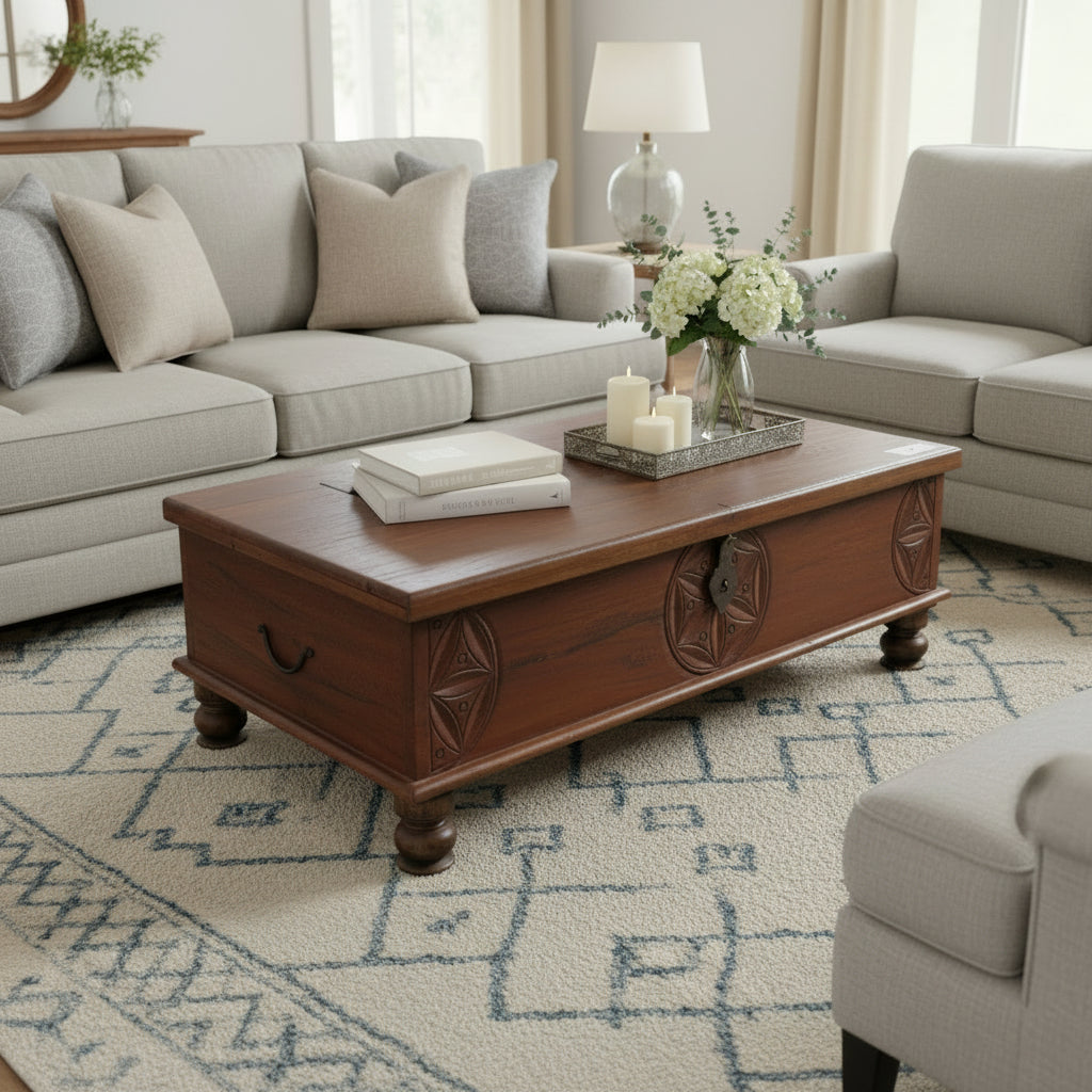 Farmhouse Style Vintage Teak Wood 48 in. x 25 in. Chest Coffee Table