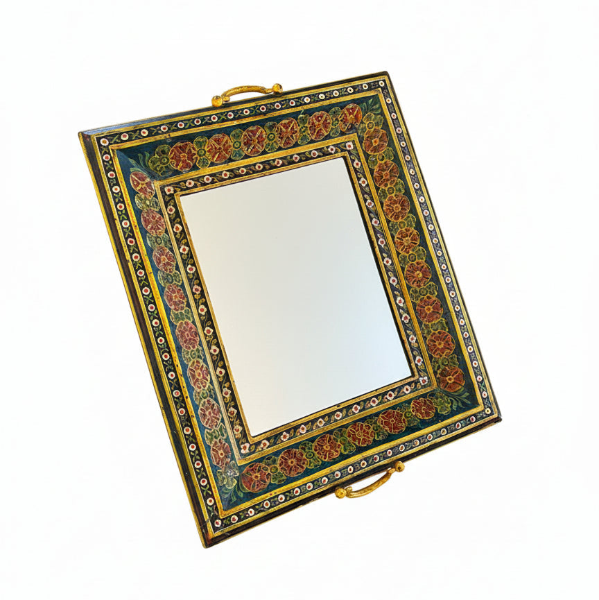 Vintage Hand Painted Lattice Metal Tray With Mirror