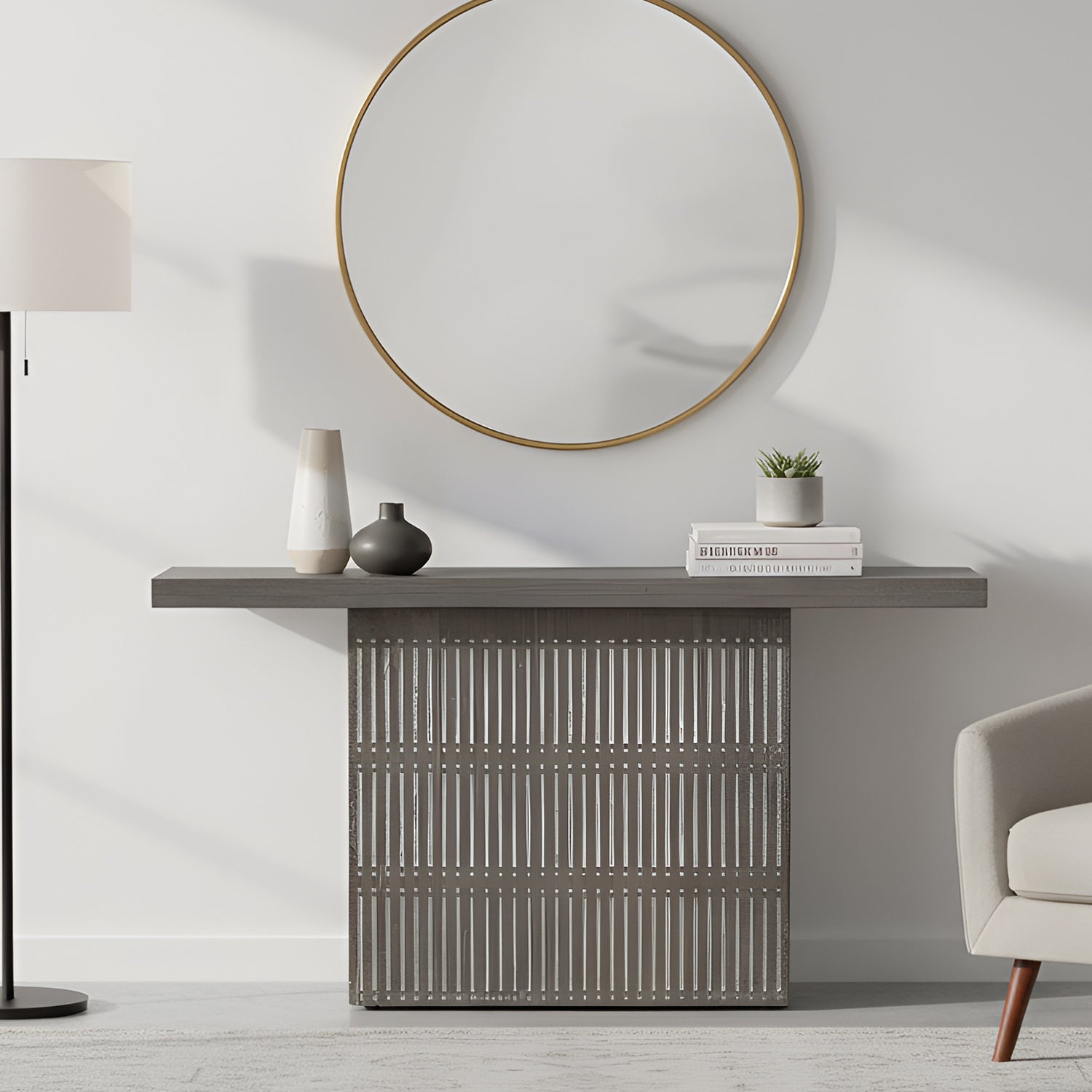 Modern Ash Gray Rib Carved Solid Wood 54" Long Console