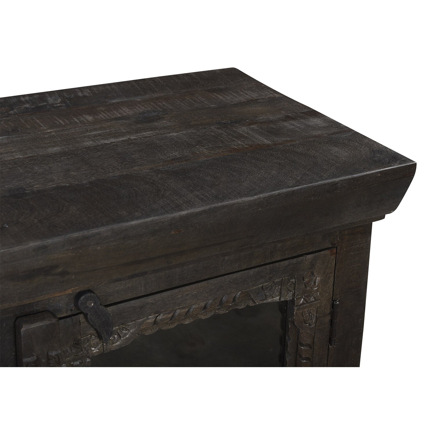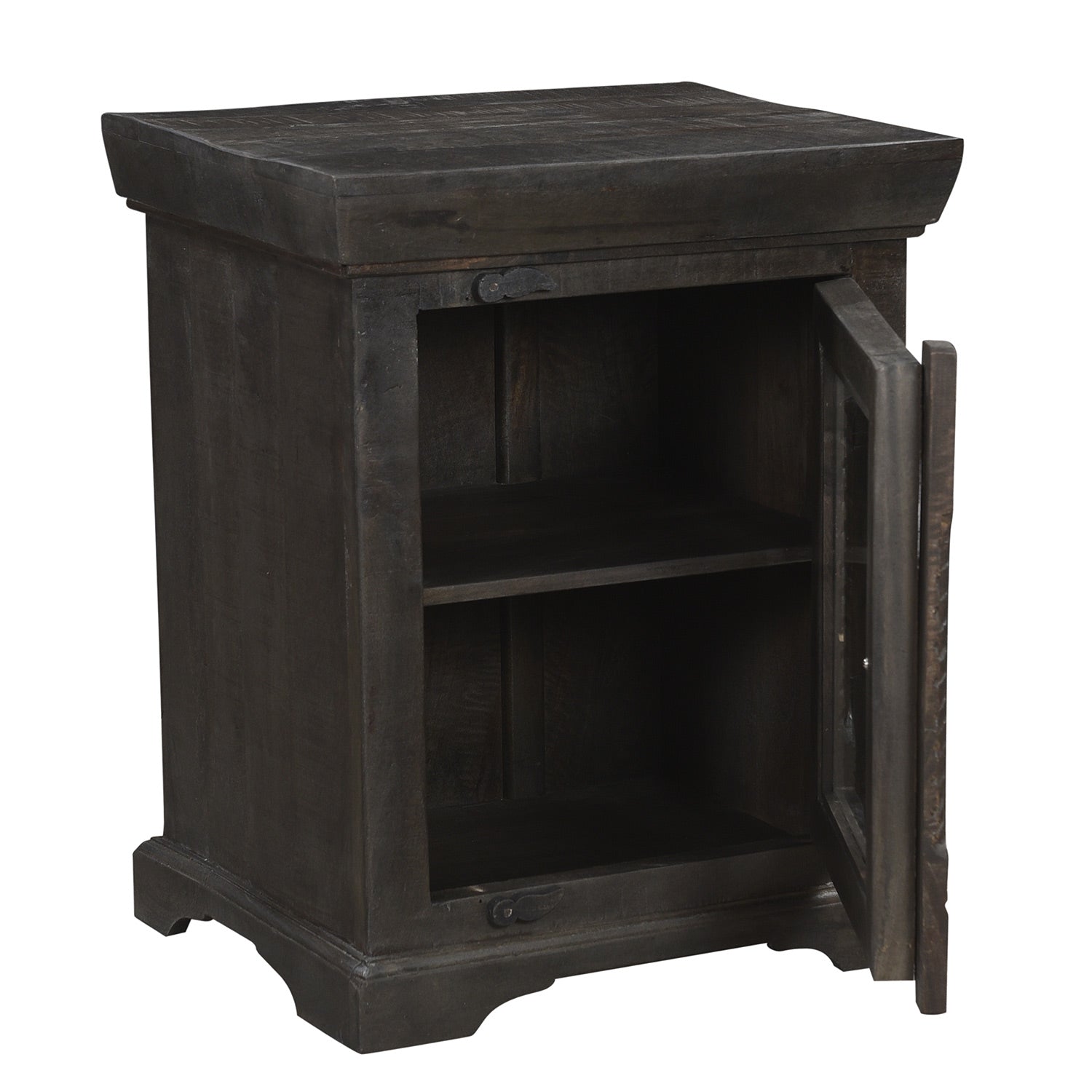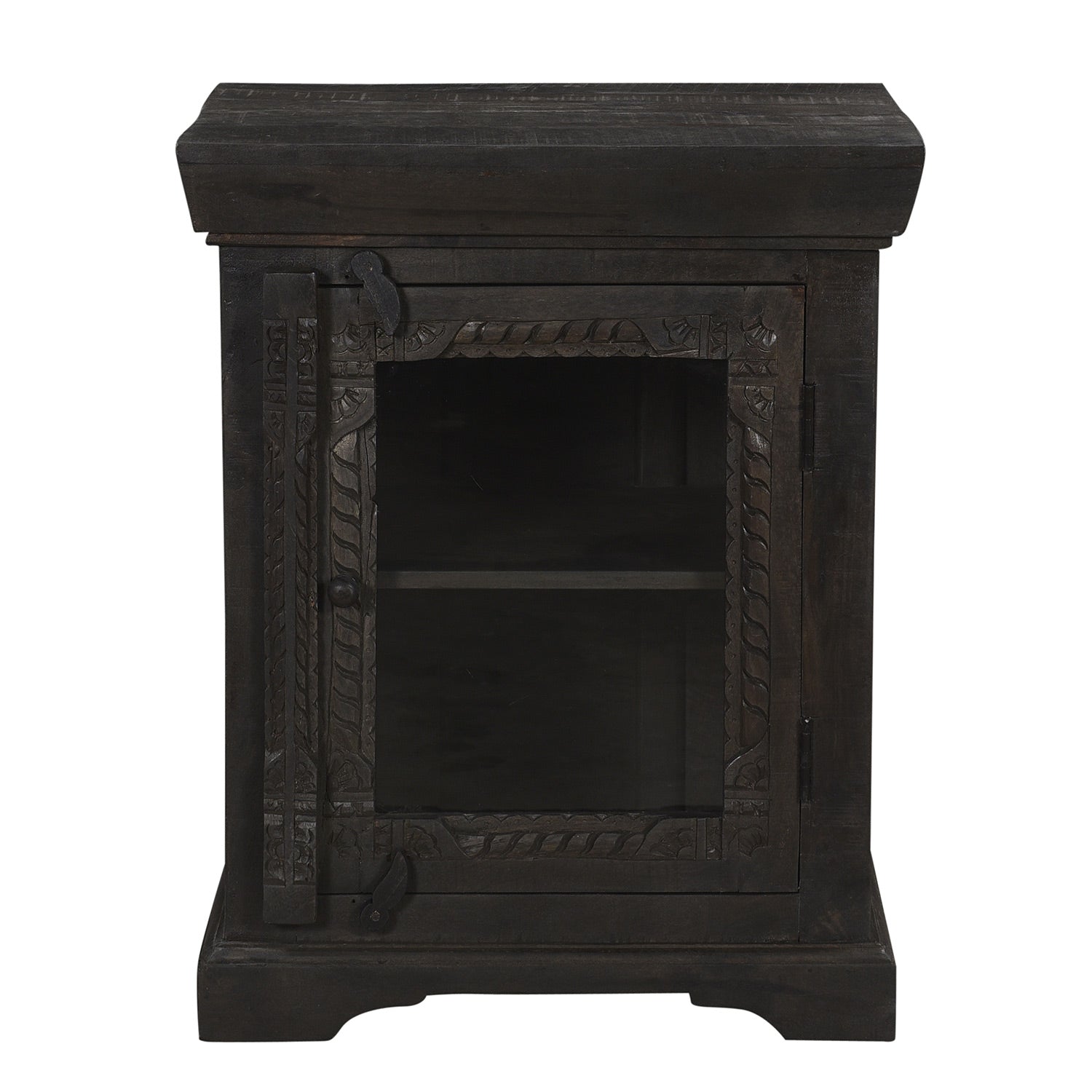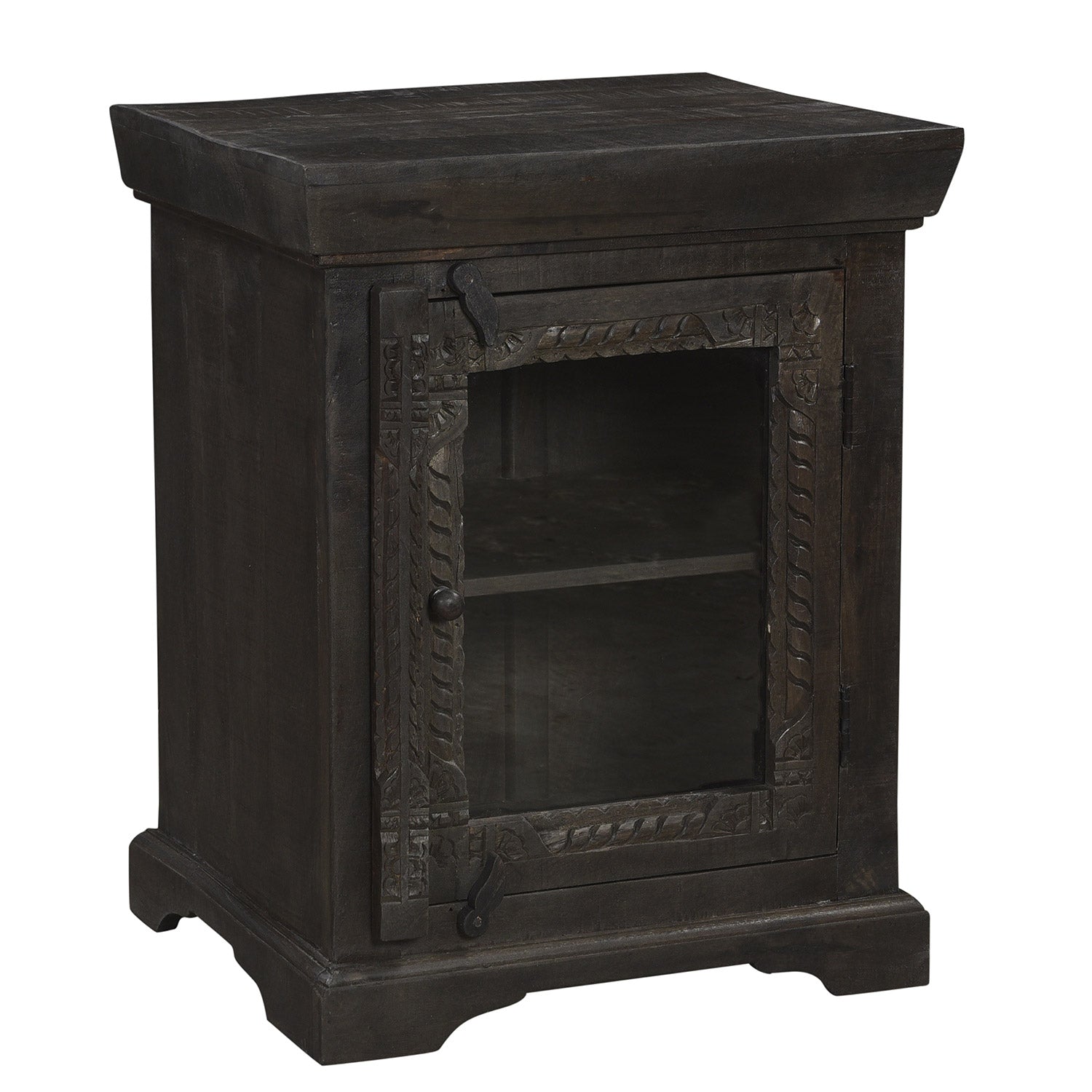 Solid Wood Carved Nightstand With Glass Door