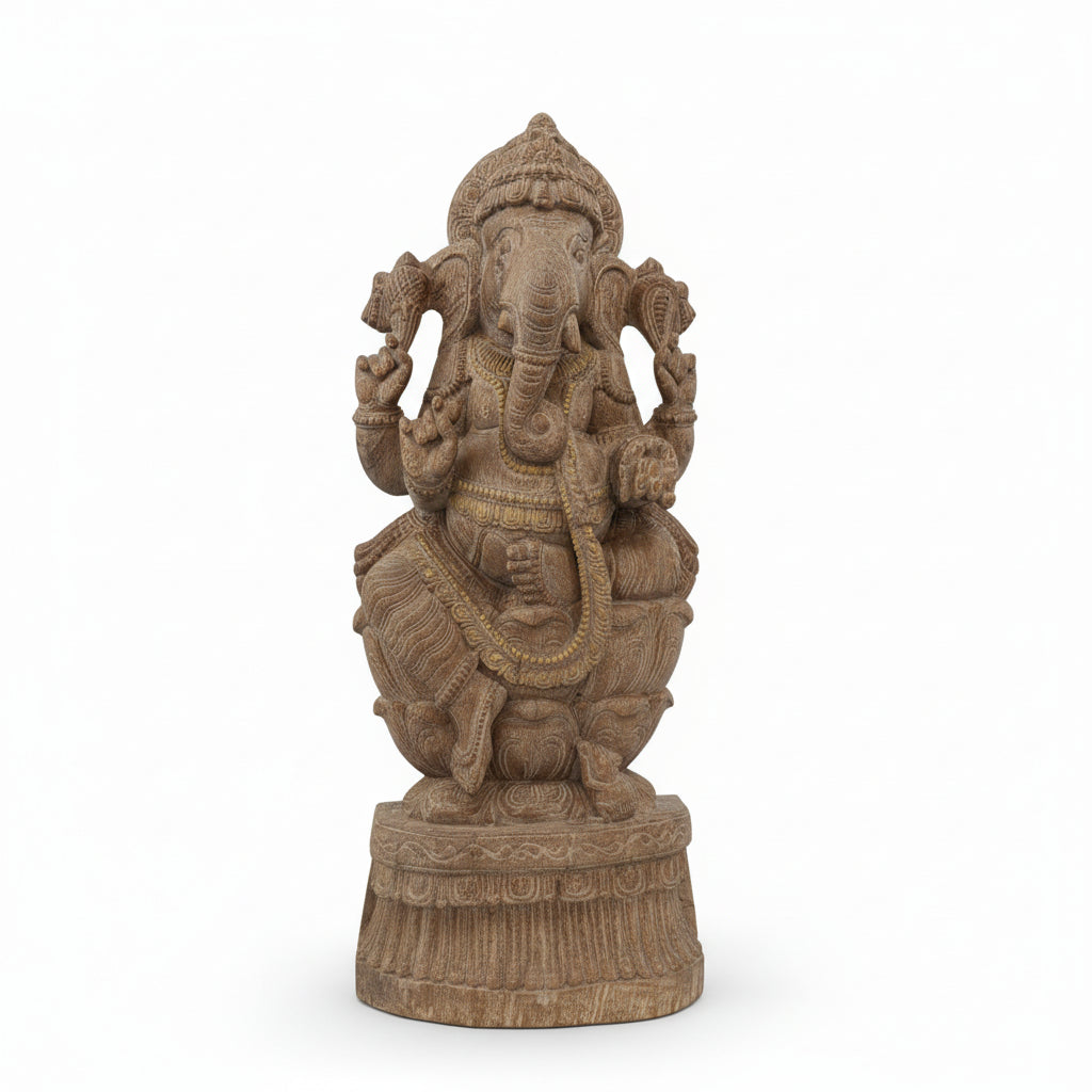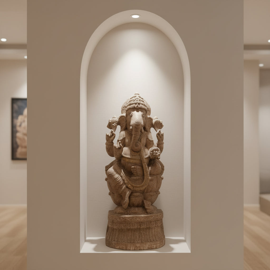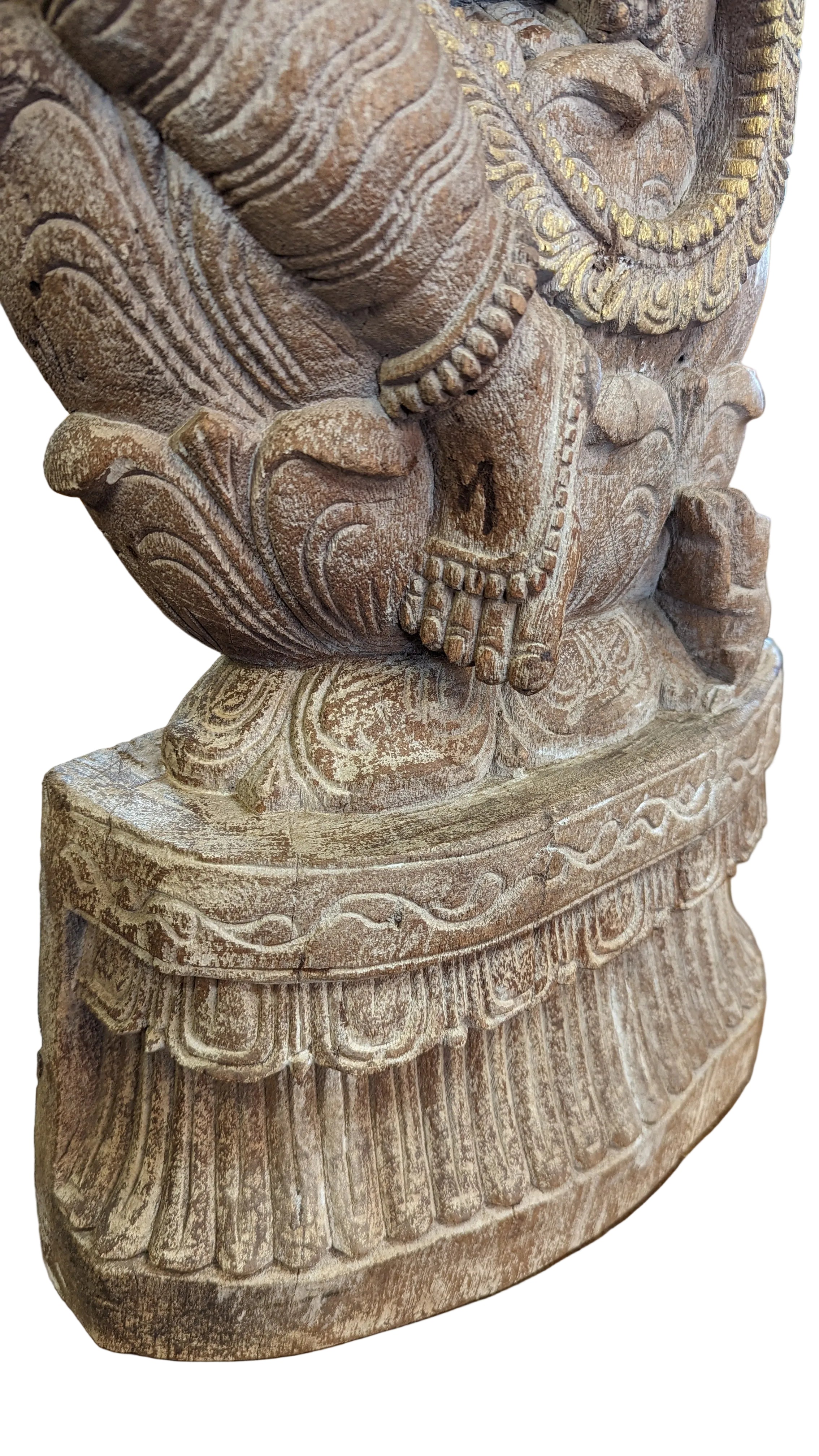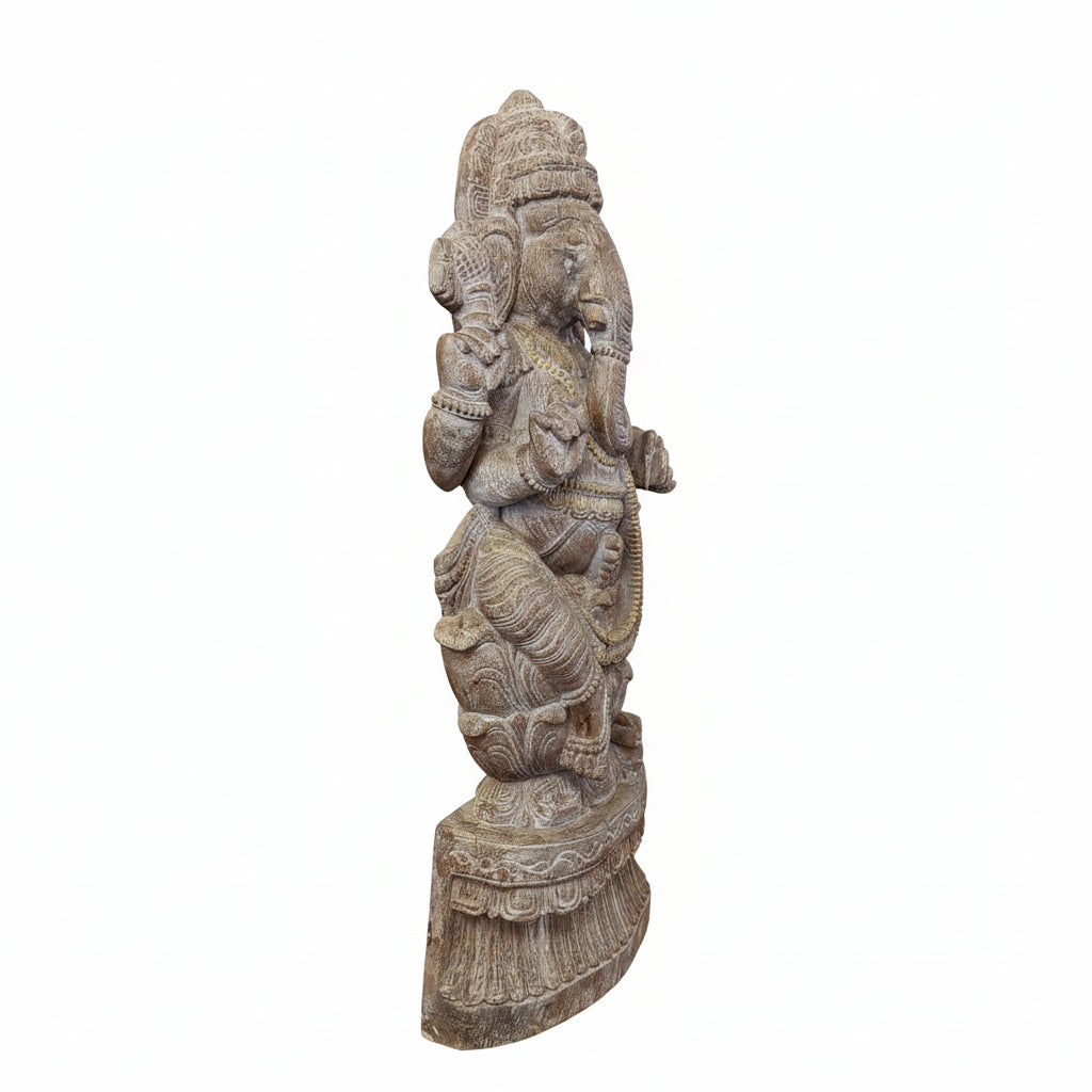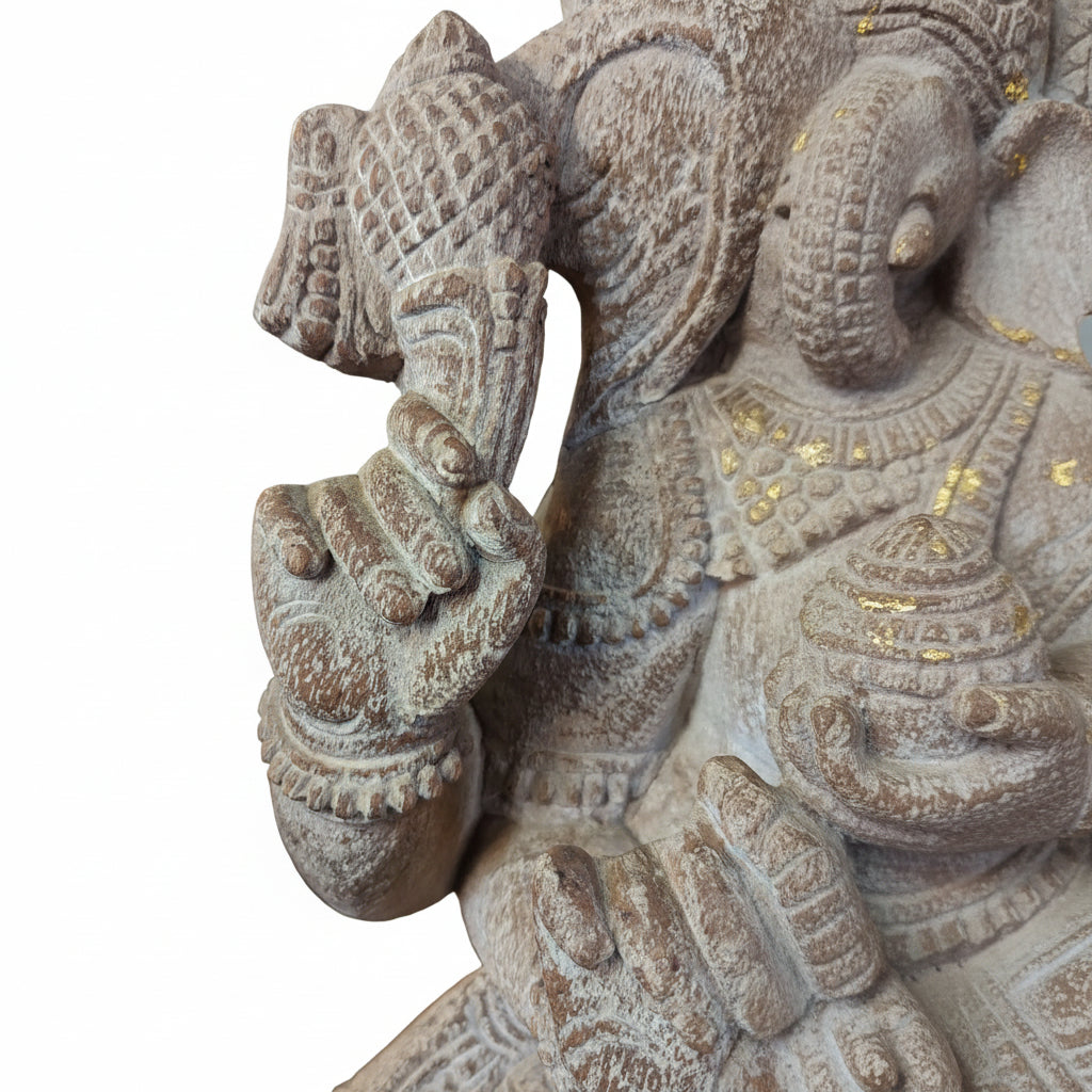 Solid Wood Hand Carved 35 in. Tall Ganesha Statue In Distressed White Finish