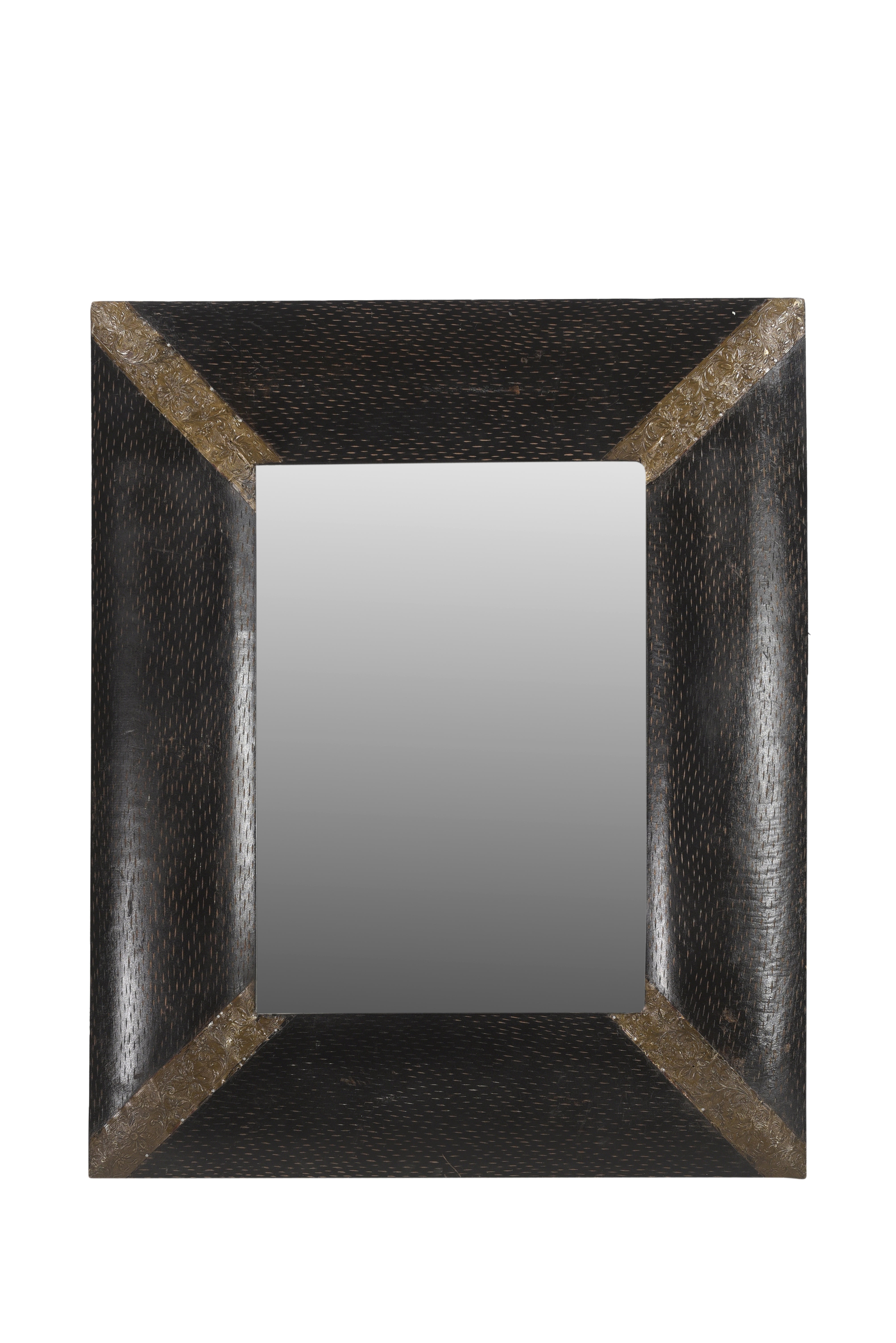 Transitional Solid Wood Vanity Mirror With Brass Foil Accent Corners