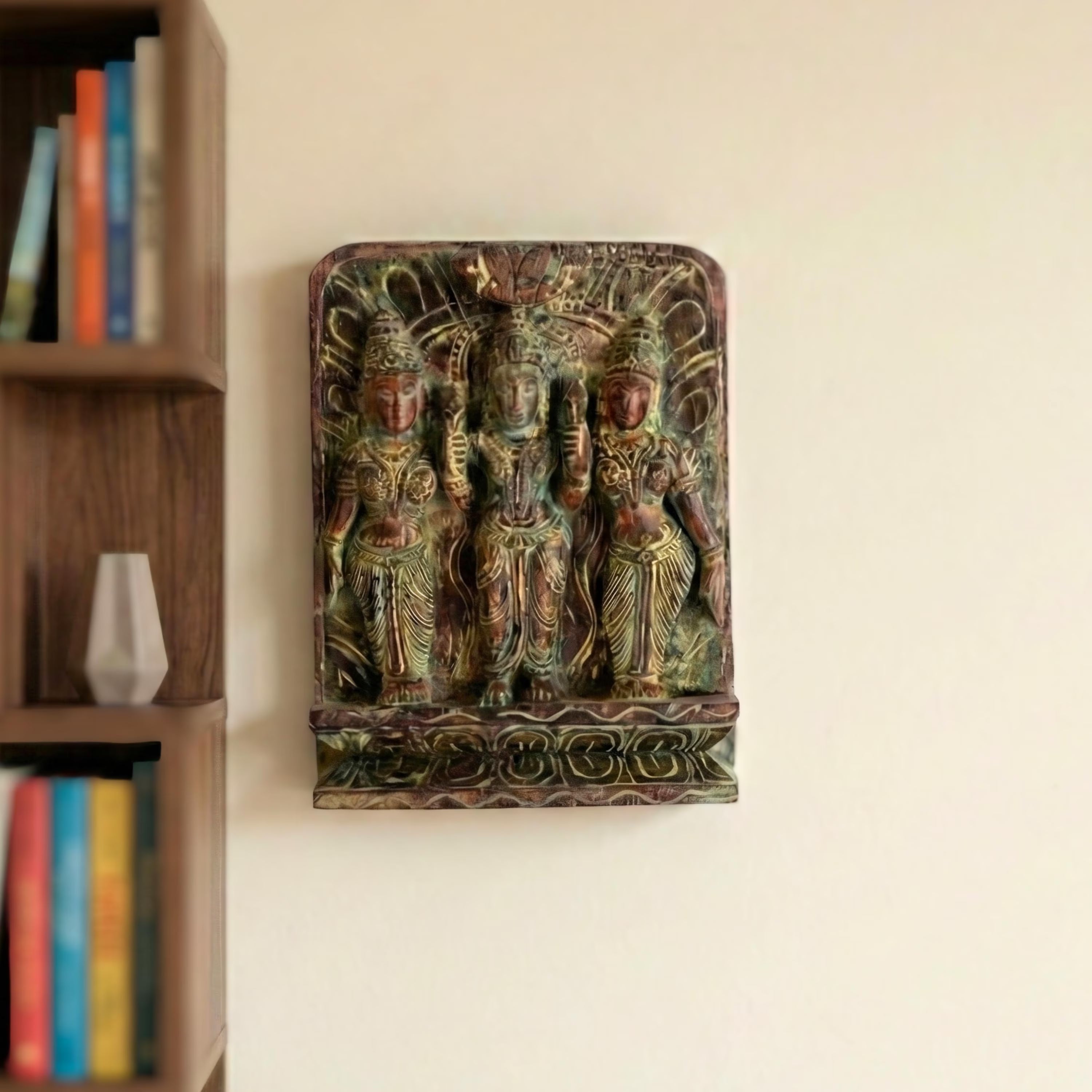 Tribal Carved Vintage Wooden Krishna And Gopis Wall Art