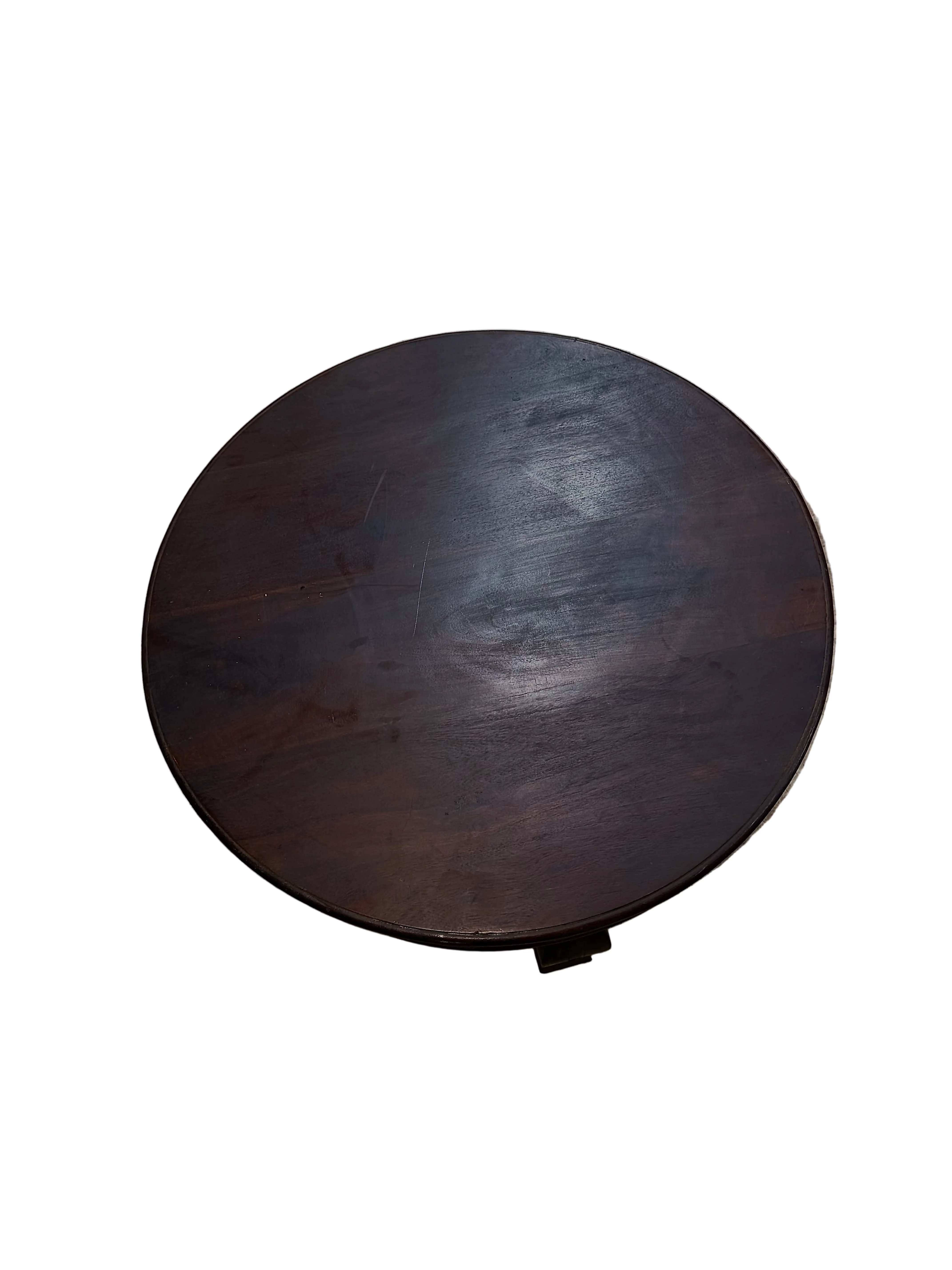 Unique 36" Round Solid Wood Cocktail Table With Brass Accents